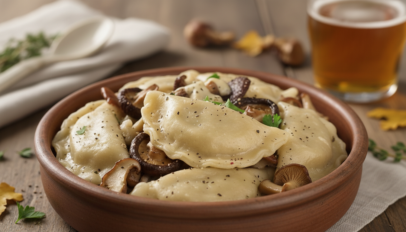 ВАРЕНИКИ З ГРИБАМИ ТА ГОЛЛАНДСЬКИМ СИРОМ 14.50€ / кг